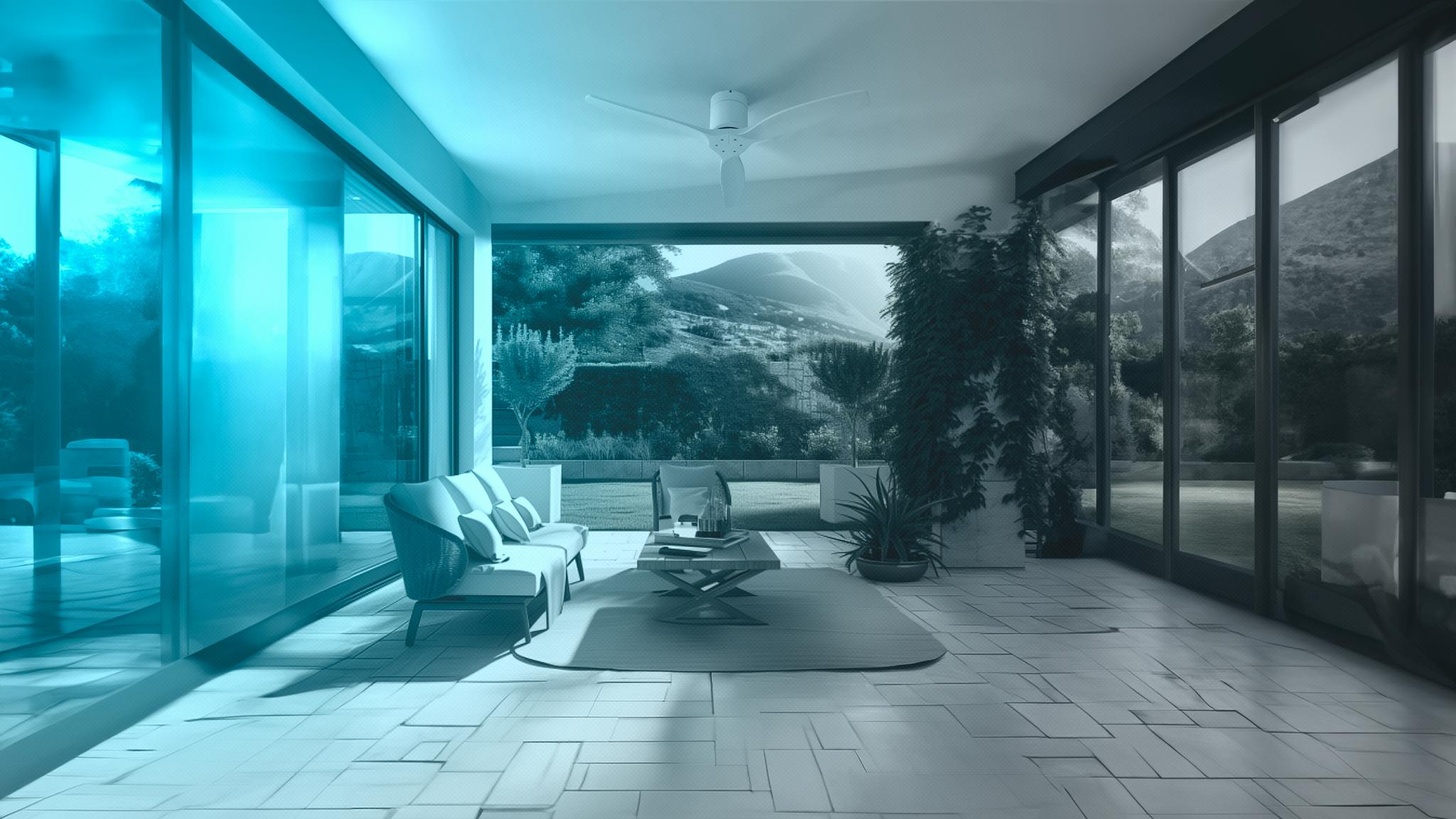 EnergySilence Aero 5600 Aqua IronWhiteWood Connected 40 W 52" Deckenventilator mit Fernbedienung, WiFi und Fernbedienung, IP44 Schutz, 6 Geschwindigkeiten, 3 Flügel, Winter-Sommer-Modus und Timer bis zu 8 Stunden.