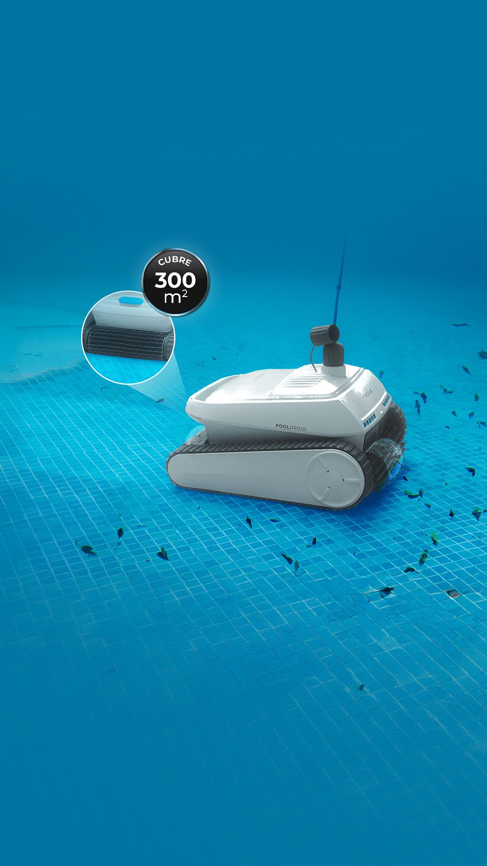 Conga Pooldroid 1000 FloorMaster Kabelloser Roboter-Schwimmbadreiniger. Geeignet für Flächen bis zu 80 m2 und 10º Neigung. der Autonomie. Boje, damit Ihr Roboter immer in Reichweite bleibt. Hochleistungsfilter Zubehör